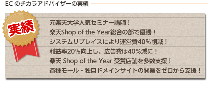 その過程で、ショップ運営に欠かせない様々なWebのシステムやASPサービスの種類が、多岐に渡り、その選定に悩む事業者様が多くいることに気付き、ECのチカラを立ち上げたのです。