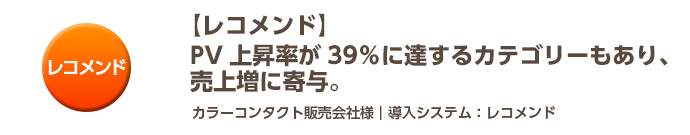 若手女性をメインターゲットとして展開しているカラーコンタクトレンズショップ。「PV数を増やす/ページの回遊性を高める→売上を上げる」というプラスのサイクルを見込んで某レコメンドエンジンを導入。