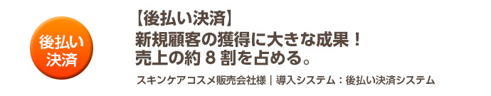 自社開発のスキンケアコスメを販売する同社。化粧品や健康食品の定期販売を行う場合、新規顧客の獲得が最大の課題と考えていたところ、後払い決済のサービスを勧められ導入に踏み切った。